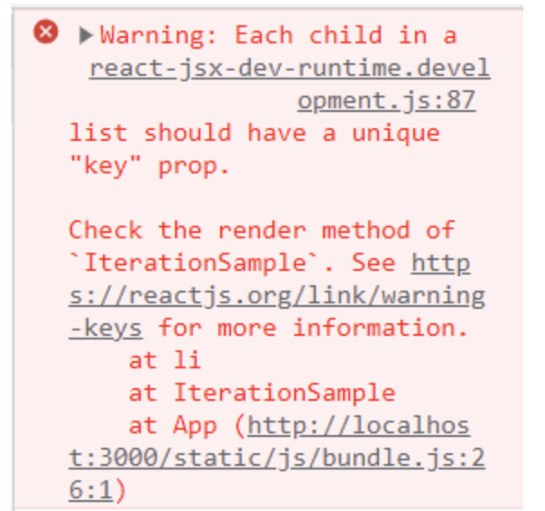 렌더링이 되지만 콘솔을 보면 "key' prop이 없다는 경고 메세지를 표기