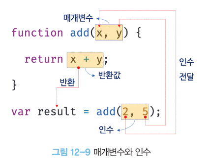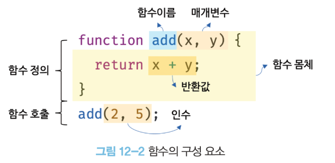 // 함수 add에 인수 2, 5를 전달하면서 호출하면 반환값 7을 반환한다.