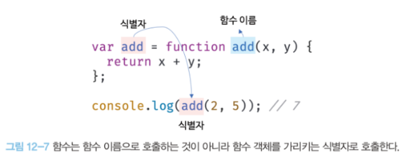 - 함수는 함수 이름으로 호출하는 것이 아니라 함수 객체를 가리키는 식별자로 호출한다
