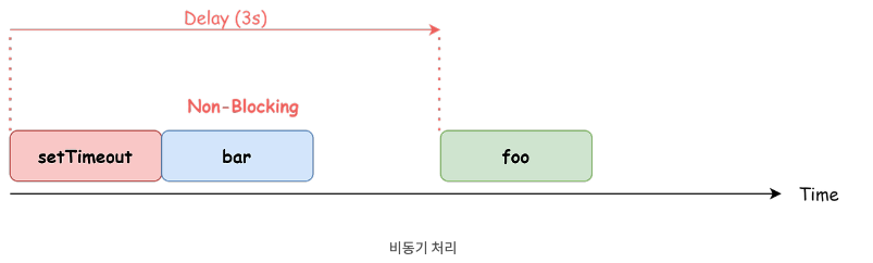 타이머함수인 setTimeout, setInterval, HTTP 요청, 이벤트 핸들러는 비동기 처리 방식으로 동작한다.