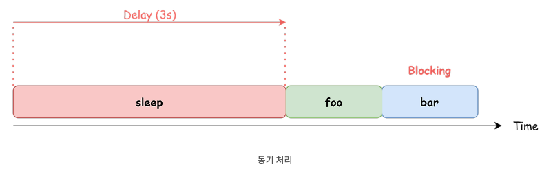이처럼 현재 실행 중인 테스크가 종료할 때까지 다음에 실행될 테스크가 대기하는 방식을 동기 처리라고 한다.