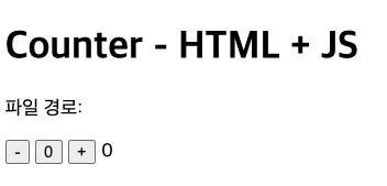 그래서 위에 나와있듯이 버튼과, 숫자를 나타내는 span 태그를 JS로만 출력한 것이다.